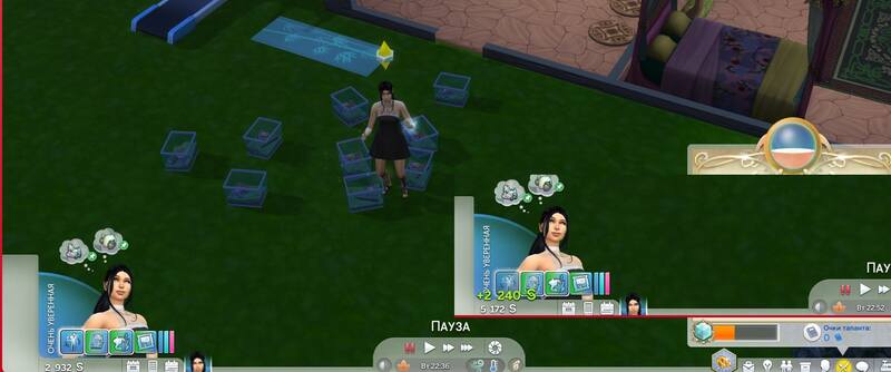 После этого начинаем практиковать заклинание тираж, пока позволяет магический заряд. Вернее, два магических заряда: один раз в день его можно сбросить без вреда для сима. Ну если не доводить до переизбытка, как опять сделал автор. Не делайте так, это опасно для жизни сима (Лори уже не очень, у нее выгода на невозможность умереть от заряда, а с прошлой недели еще и цветок смерти в багаже).