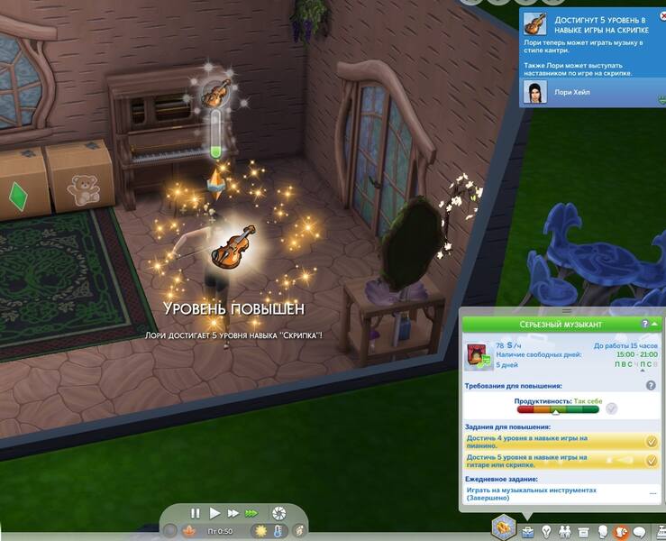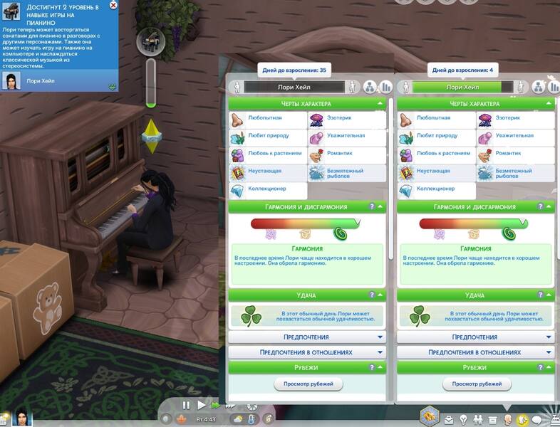К полуночи отправляем ее осваивать пианино - и наконец спохватываемся, что время-то идет, а у нас цель даже близко не выполняется. Ну и Лори до взросления четыре дня. Ругнулись - и пошли исправляться. Для начала, омолодили Лори (одно из зелий чародея это умеет, а у нас по экземпляру почти каждого).