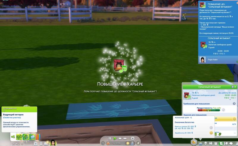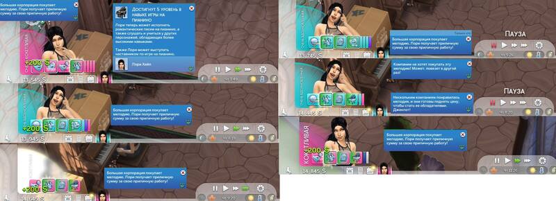 Зачем автору потребовались танцы с бубном, отчасти видимые на этом скрине, автор не помнит, однако зачем-то были проданы не все лягушки, а только две, чтобы до двадцати тысяч нехватало меньше двухсот симолеонов. Эти симолеоны (и новая ступень жизненной цели) были заработаны сочинением мелодий - и только после этого, пока Логри бегала, были допроданы лягушки.