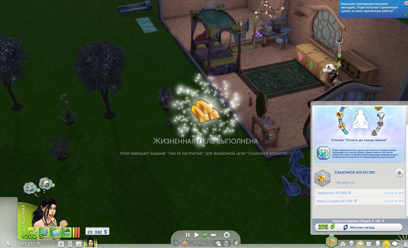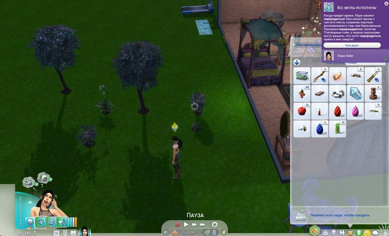 Плюс одна ступень жизненной цели, плюс один этап жизненного пути. Завершающая (для живого сима, но в призраки Лори не торопится). Дает возможность переродиться (но это тоже рановато). Список "успеть до конца жизни" пропал, что печально: я бы не отказалась от дополнительного задания на получение баллов счастья.